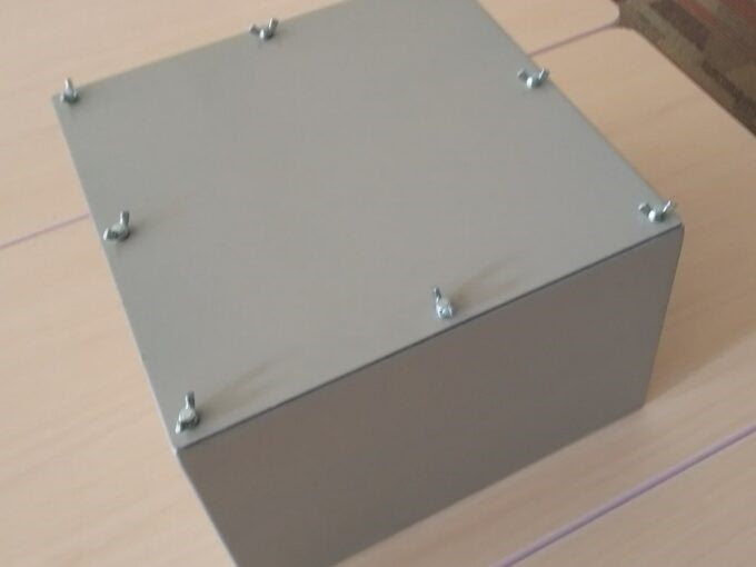 国交省仕様の溶融亜鉛めっきプルボックスです。屋外仕様のプルボックスですが、150角の大きさなので、被せ防水蓋で製作しております。