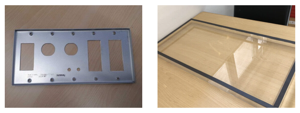 スイッチが誤って押されないように、スイッチを保護するカバーです。ポリカーボネートを使用する場合もありますが、今回はコストを重視してアクリルとしました。